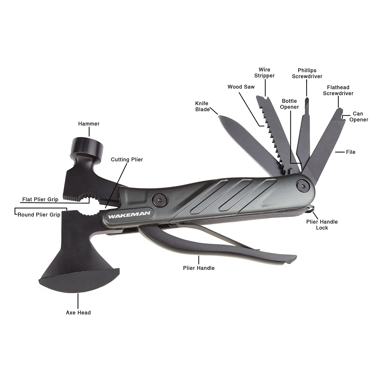 • MULTI-FUNCTIONAL - Carry this Wakeman Outdoors All-In-One Axe and Hammer tool on your next camping or hiking trip and be ready for anything. Equipped with a double-sided axe and hammer head.